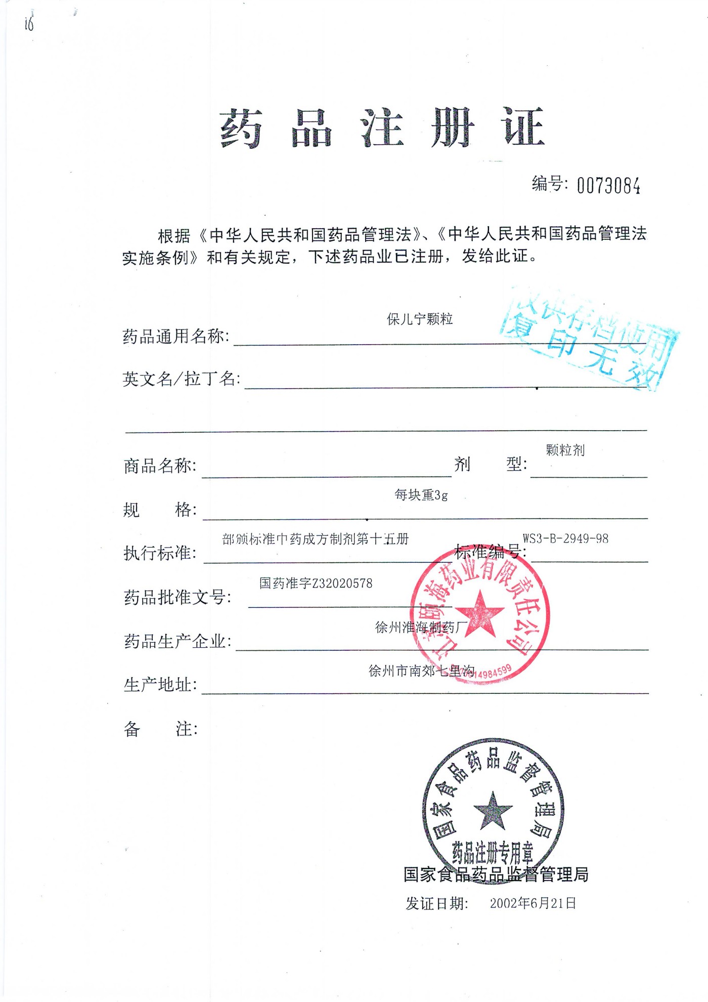 保儿宁颗粒 16块装