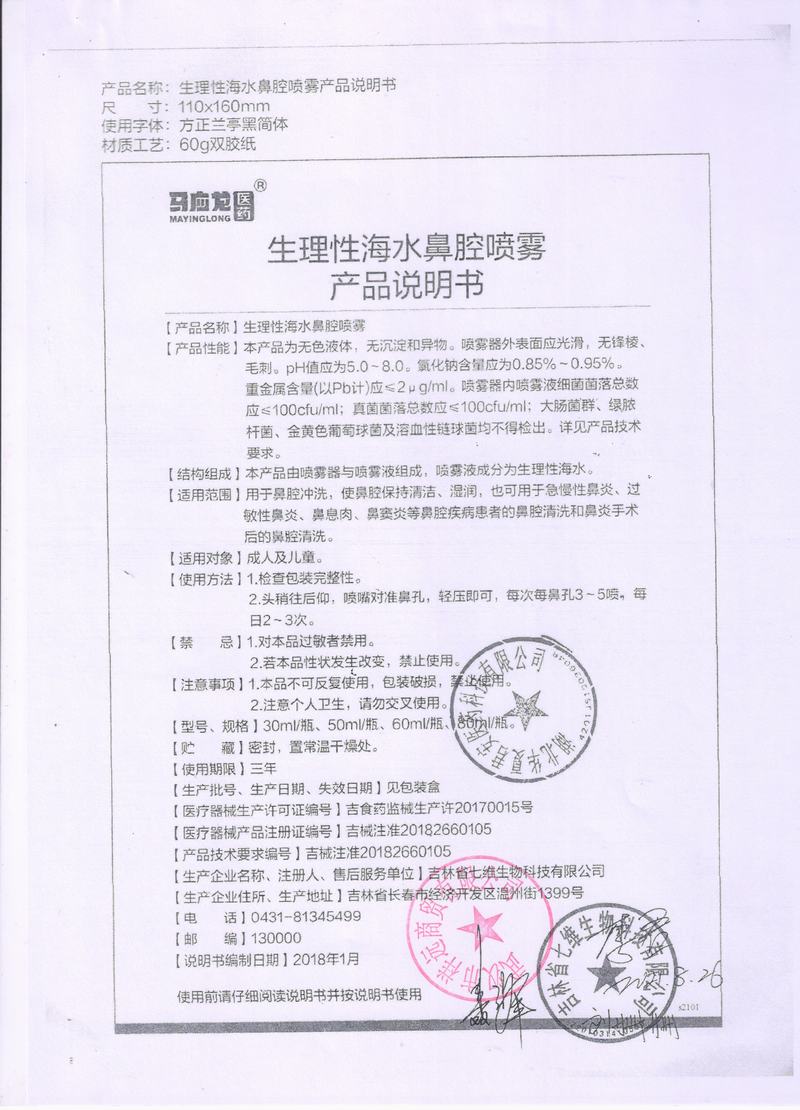 注册证号:吉械注准20182660105