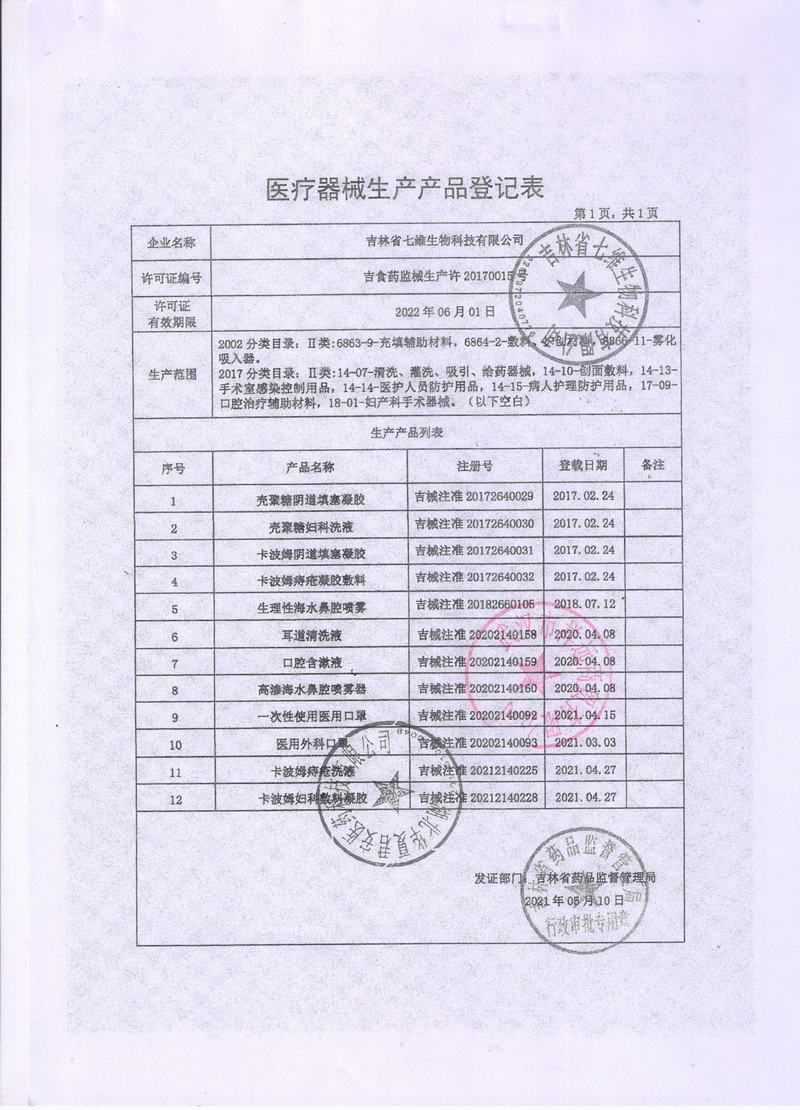 生产企业:吉林省七维生物科技有限公司